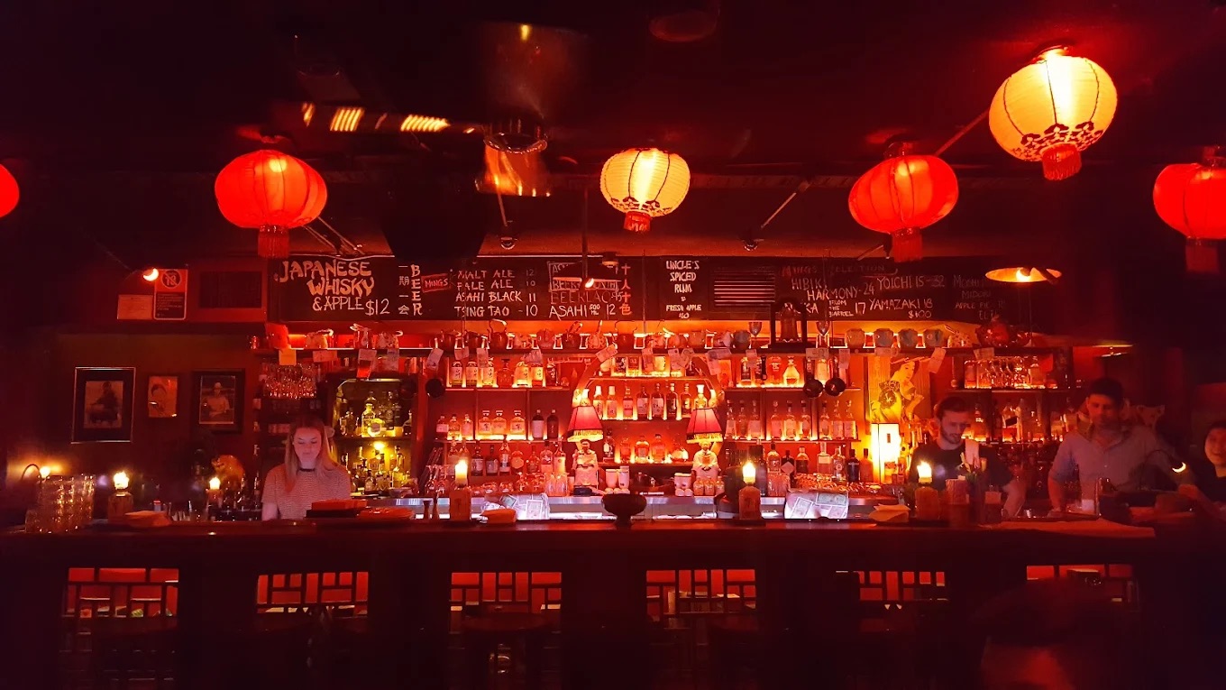 Dumplings, cocktails and sake in an intimate, dimly lit basement with funky Chinese decor.